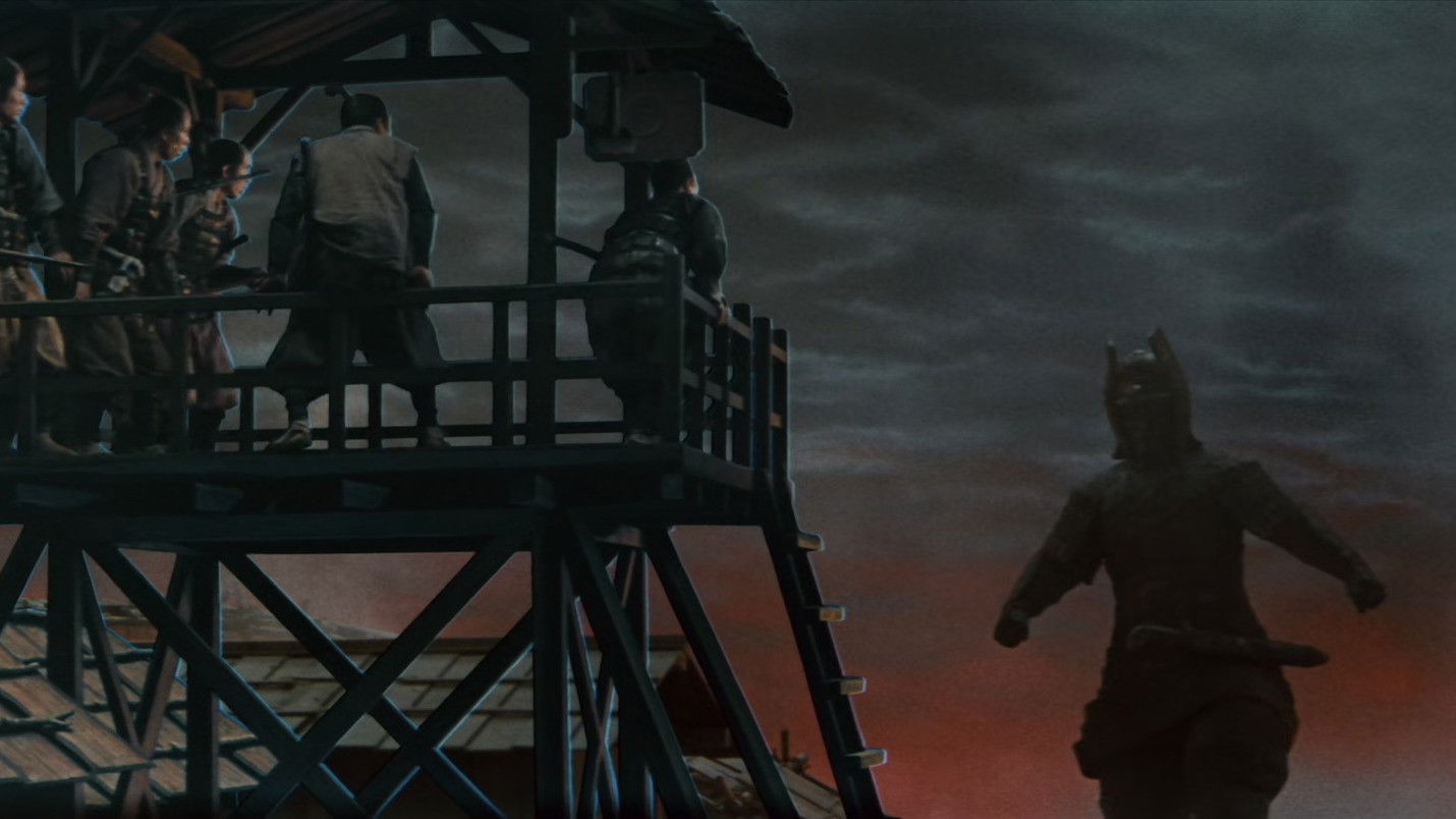 A giant stone statue comes to life to protect the residents of a small town against the depradations of an evil warlord.